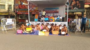 नावानो से महज 500 मीटर की दूरी पर अर्धनग्न होकर प्रदर्शन किया सिविल डिफेंस और डिजास्टर मैनेजमेंट के अस्थाई कर्मीयों ने।